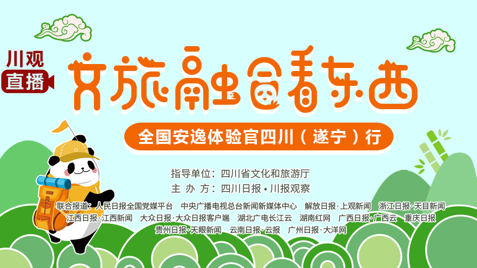 天府三九大,安逸走四川。”12月27日,“文旅融合看东西”全国安逸体验官四川行活动将在成都天府芙蓉园启动,届时来自全国的主流媒体、知名摄影师代表将走进四川,感受四川文旅盛宴。启动仪式结束后,20余名体验官人员将来到遂宁。