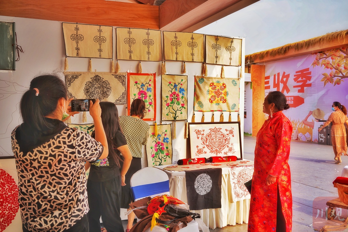值得一提的是,今年,川渝妇联联动,首次在丰收节现场布置了“川渝乡村女能人成果展”,既有精美的手工艺作品、伴手礼,还有美食技艺展示、特色农产品推介。