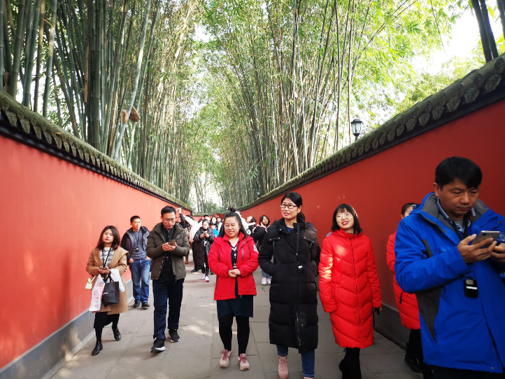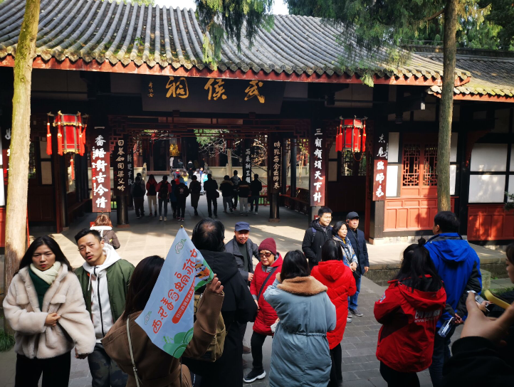 12月28日,“文旅融合看东西”全国安逸体验官四川行A组安逸体验官们在武侯区的最后一站,来到的是久负盛名的武侯祠。恰逢周末,游人如织,安逸体验官们实地感受了一把武侯祠的火热魅力。