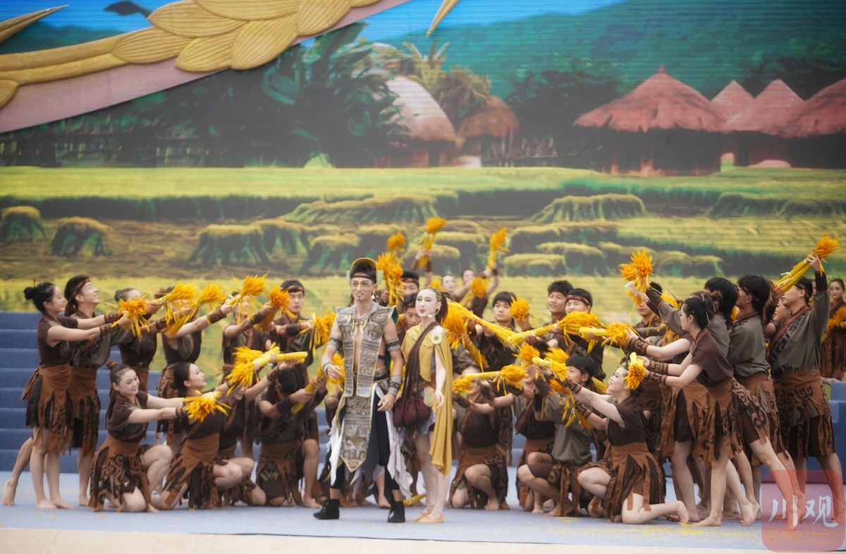 当天的活动现场,还呈现了一出精彩的原创舞台剧《千年稻香》,以三星堆考古出土的碳化稻米种子为创作动机,讲述距今4500年前的成都平原发达的农业文明的故事,展现古蜀文明悠久的稻作文化。