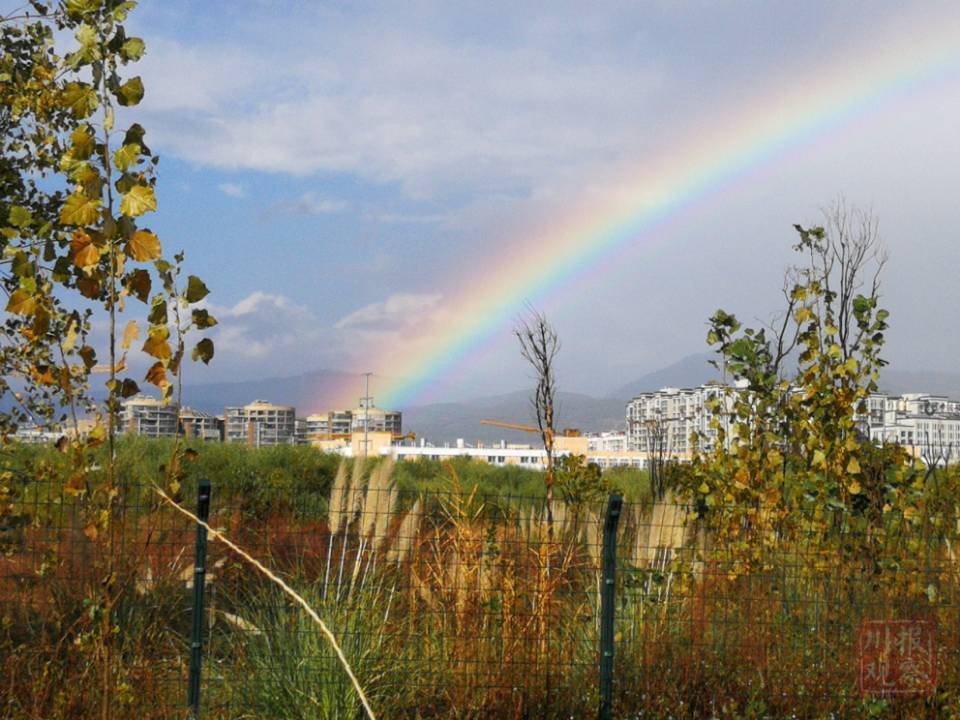 少见的双彩虹引来不少游客和市民观赏。在双彩虹中,下方的主虹颜色更加明显亮丽,上方的副虹颜色略显偏淡,但也清晰可见。双彩虹持续了十多分钟。