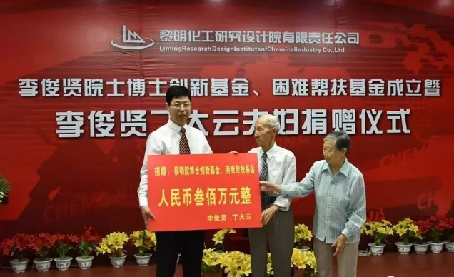 90岁高龄的李俊贤,和夫人丁大云一起,以普通共产党员的身份,向所在工作单位黎明化工研究设计院捐出省吃俭用积攒的300万元,设立博士创新基金和困难帮扶基金,赢得了广大群众的称赞。