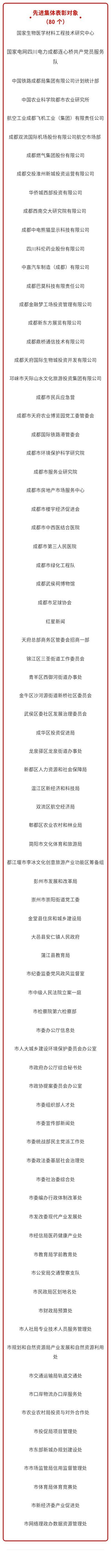 二是面向基层,倾斜一线。获奖的先进集体中,不乏锦江区三圣街道党工委、青羊区西御河街道办事处、金牛区沙河源街道新桥社区委员会、大邑县安仁镇人民政府等基层单位;还有国家电网四川电力成都连心桥共产党员服务队等群众身边的榜样也获得表彰。