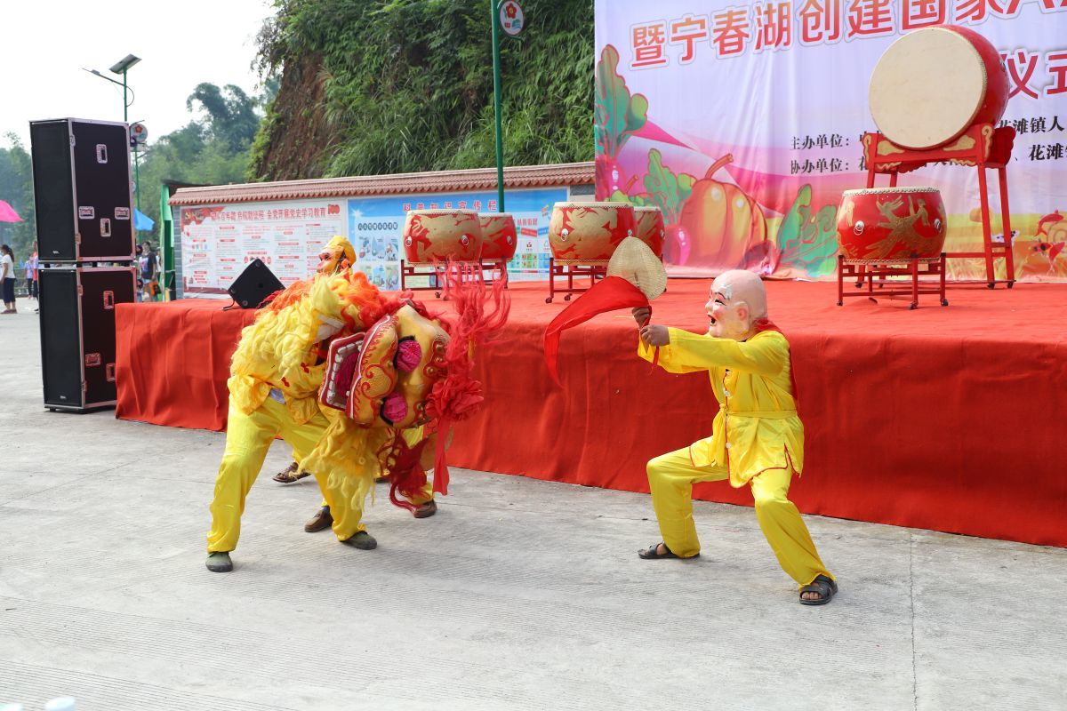 除了精彩的比赛外,丰收节现场,手工红苕粉、宁春湖生态鱼、花滩花溪兔、花滩优质大米、花滩腊肉等特色农产品展示以及车灯、舞龙舞狮等非遗民俗展演活动也吸引了不少群众驻足参与,共享丰收喜悦。