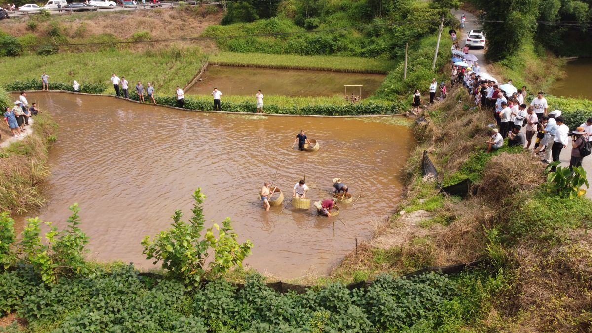 “丰收节,大丰收。”村民王启元现场钓了两条大花鲢有15斤重,“心情特别好,今晚拿回去炖一锅。”