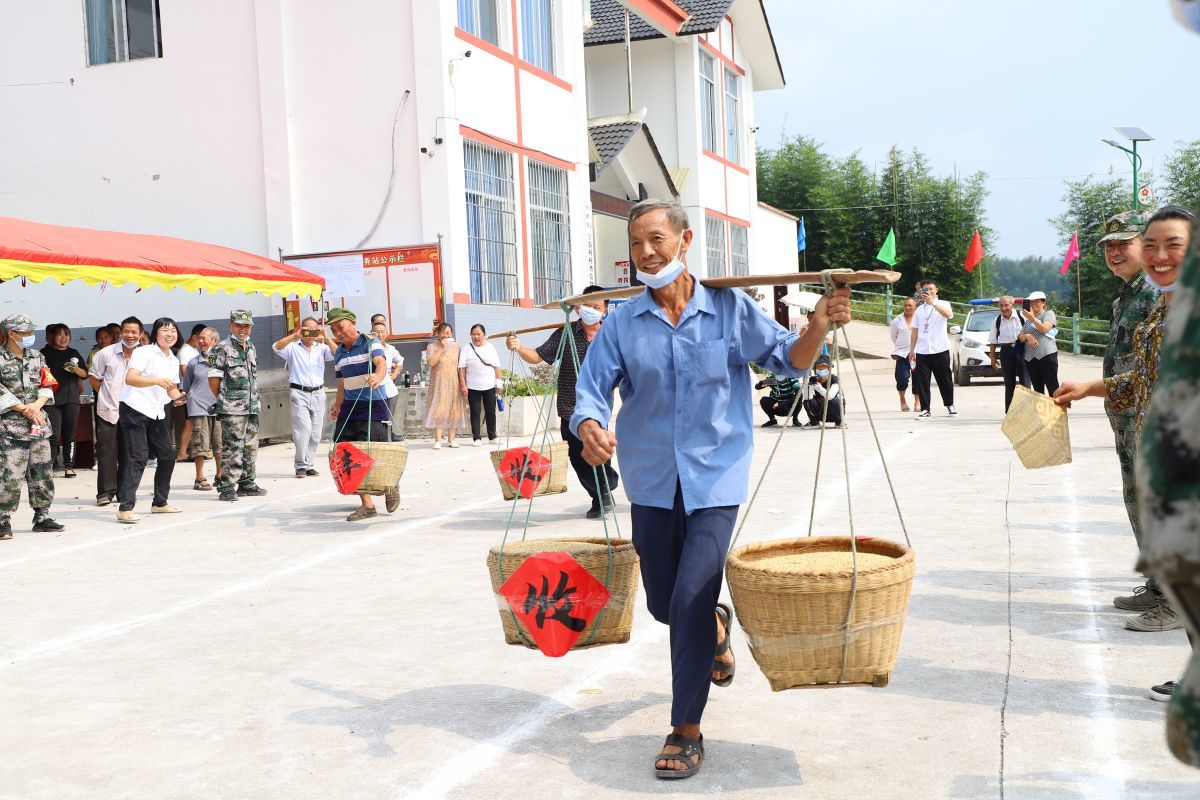 “预备,开始……”丰收节上,挑谷子比赛现场热闹非凡。平日里最常见的劳动生产景象变成了“比赛项目”。平日里忙于农活的农民大叔大哥摇身一变成了“运动员”。可不要小瞧了这样的比赛,来回100多米的路程,100多斤的重担,大家比的不仅是体力,更是速度和耐力。