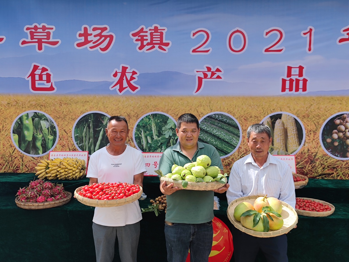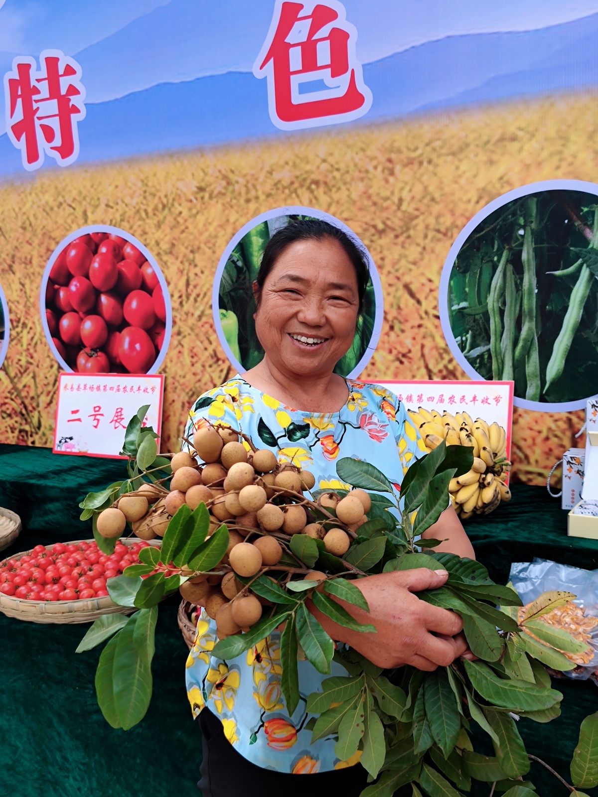 此外,活动现场设置了丰收大舞台,展台上芒果、桂圆、芭乐等水果个头饱满、色泽诱人,枇杷膏、核桃油、粮食酒等产品陈列整齐,草场镇各村结合实际情况拿出特色农业成果、农作物进行展示,将全镇农业发展的丰硕成果呈现在观众面前。“村村有产业,户户有收入,你看现在生活多好!辛苦忙碌了一年,今天在这里一起庆祝丰收,希望明年也有一个好收成。”草场镇龙华村村民鲍登荣满面笑容。
