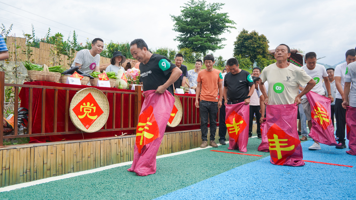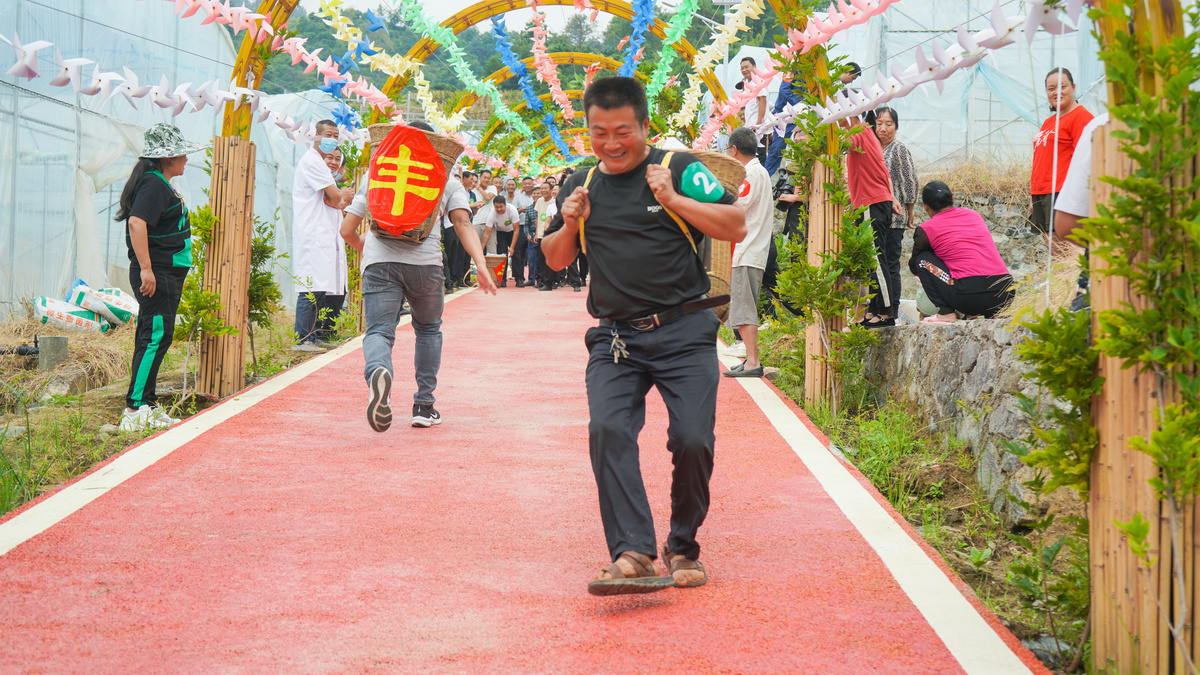 玉米接力活动、挑担子接力比赛、麻袋跳接力赛......在草场镇仙山村农民丰收节活动现场,多项趣味活动热闹非凡。村民们齐心参与、奋力拼搏,亮出奋进姿态,赛出丰收喜悦。