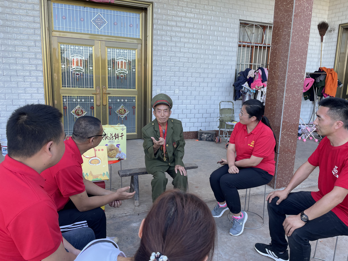 在志愿服务的同时,党员志愿者们还在仁美镇看望抗美援朝老兵杨明科,聆听老战士讲述当年抗美援朝时的战斗历程和峥嵘岁月,传承红色力量。杨大爷1933年出生,1951年参加中国人民解放军,是抗美援朝志愿军63军187师战士。当老人家知道志愿者所在单位是部队转业的单位时,不禁打开了话匣子,为大家讲述了当年他在朝鲜战场上经历的一些枪林弹雨的真实场景,还展示了一张当年抗美援朝时期,朝鲜部队一名排长送他的50元朝鲜币。兴起之时,老人家完整演唱了《中国人民志愿军战歌》,“雄赳赳,气昂昂,跨过鸭绿江……”歌声气势犹在,一如当年的革命精神。