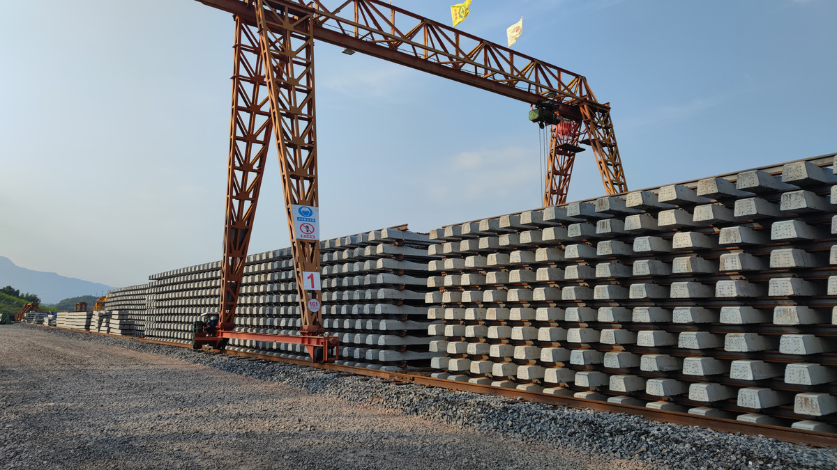 “一孔梁由4-5片T梁组成,每片长32米、重134吨。”铺架工程现场副总工聂凡介绍,铺架工程是铁路项目从线下工程向线上工程转战的标志,9月7日,叙毕铁路川滇段的铺架工程启动,从牵出线开始架梁,以每天2.5孔的速度推进,经过半个月的不懈施工,成功进入叙毕铁路正线施工。“按照施工计划,年内我们将完成叙永北站到高峰寺车站、28公里里程的桥梁铺架。”