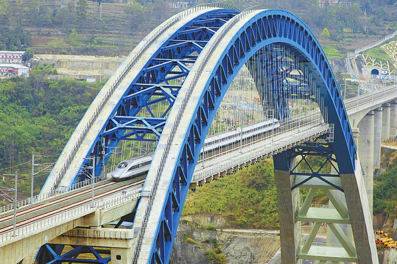 一辆列车驶过成贵高铁鸭池河特大桥。 新华社记者 刘续 摄