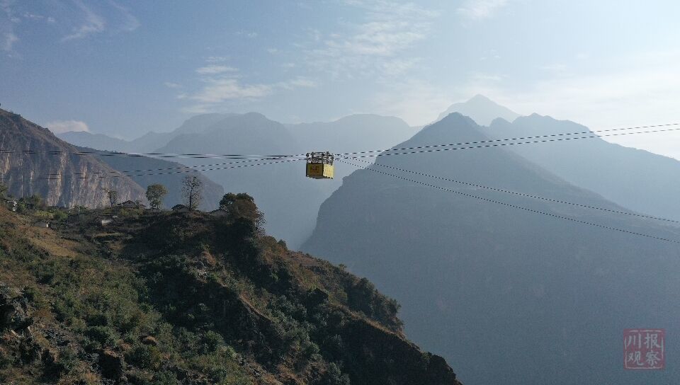 “出来了!出来了!”12月31日中午1点,挂断客车司机吉如木俄的电话后,阿达么有杂从小卖部走出,沿着新铺好的道路,来到悬崖边登上“峡谷摆渡车”,20分钟后,到达对岸,再坐上客车去布拖县城,她要去补点货带回村卖。