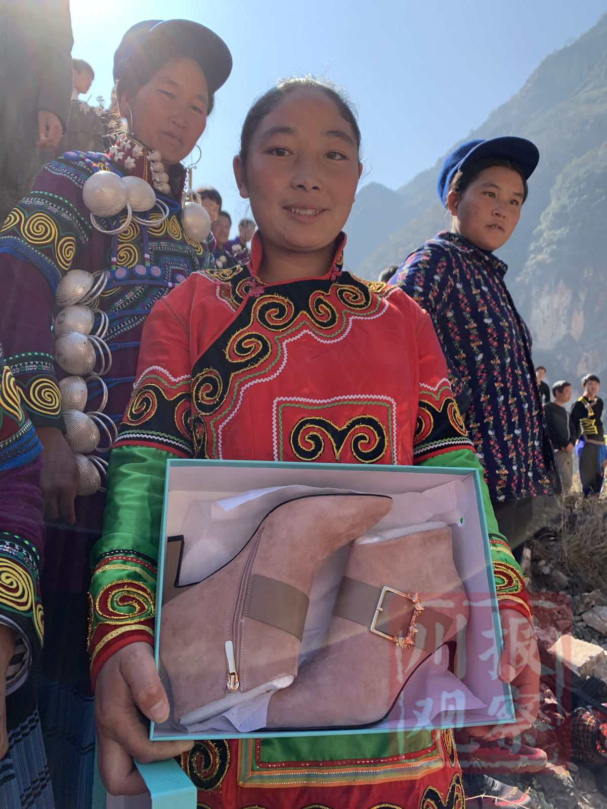 “谢谢好心人!谢谢你们!”12月31日中午1点13分,伴随着缆车缓缓移动,巴布洛哈峡谷摆渡车稳稳停下,车门打开,首批乘客之一阿达走出车门,人群中,有人走到她跟前,送她一个盒子,打开一看,哇,是一双高跟鞋。这是她23岁人生中第一双高跟鞋。