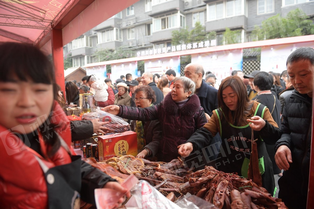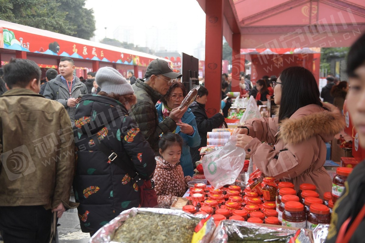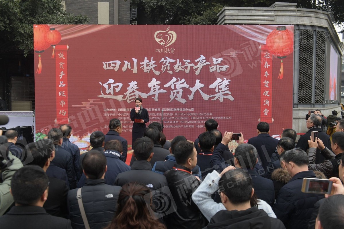 12月31日,“四川扶贫好产品迎春年货大集”开幕,在成都宽窄巷子主会场,来自全省各地的农特产年货琳琅满目,顾客把展销摊位围得水泄不通。更有网红在现场网络直播带货,让更多的人看到四川的好产品。