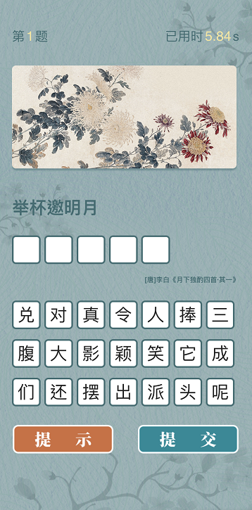 是不是已经心痒痒,跃跃欲试啦!赶紧来看看游戏怎么玩?阅读活动规则后,进入正式游戏界面。系统将给出了一句诗/词的上半句,或者下半句。你只需要动动手指,在界面下面框中,选出正确的答案,组成诗句,就大功告成啦。
