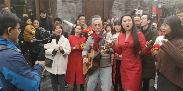 《我和我的祖国》在大街小巷传唱,已成为2019年难以忘却的记忆。2019年初,台湾音乐教父陈彼得和四川歌唱家马薇领衔,在成都宽窄巷子街头演唱,吸引了上千名市民和游客自发参与,动情的大合唱,温暖了一座城。“我和我的祖国,一刻也不能分割。无论我走到哪里,都流出一首赞歌……”2月7日,央视“朝闻天下”栏目和“新闻联播”先后播出新春唱响“我和我的祖国”城市快闪成都篇,刷屏网络。