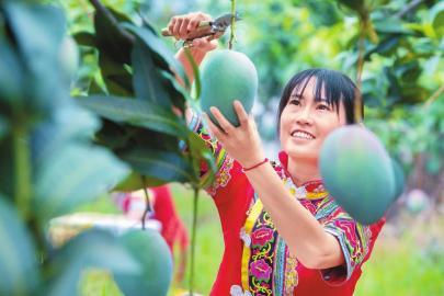 今年攀枝花芒果喜获丰收。预计产量约24万吨,较同期增长50%,产值达11.56亿元。图为9月5日,攀枝花市仁和区大龙潭乡混撒拉村芒果种植户正在采摘、挑选芒果。
