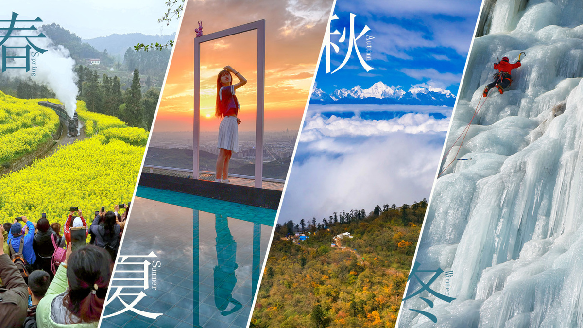 春有十里桃花,夏可遥望雪山,秋有五彩山林,冬能绝壁攀冰。东西南北、一年四季,四川皆有动人景致。回望2019,四川各季的不同切片,真是美得让人动容。