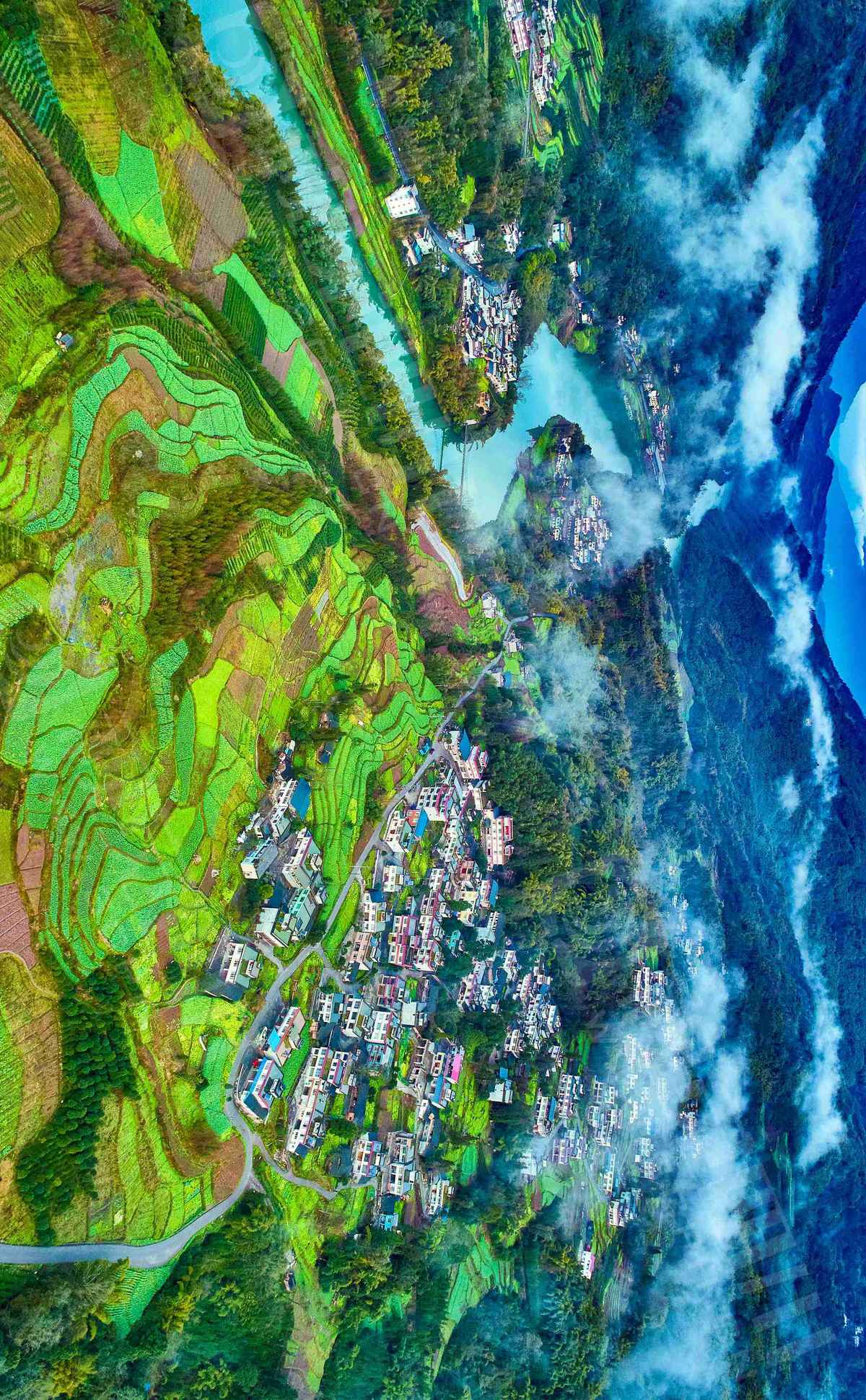 ▲2月25日清晨,初春的斜阳刚刚起,在雅安市雨城区周公河畔的孔坪乡,梯田、翠竹、碧水与空中云雾和远处的瓦屋山遥相辉映,形成一幅静怡的山水画卷。视觉四川 黄刚 摄