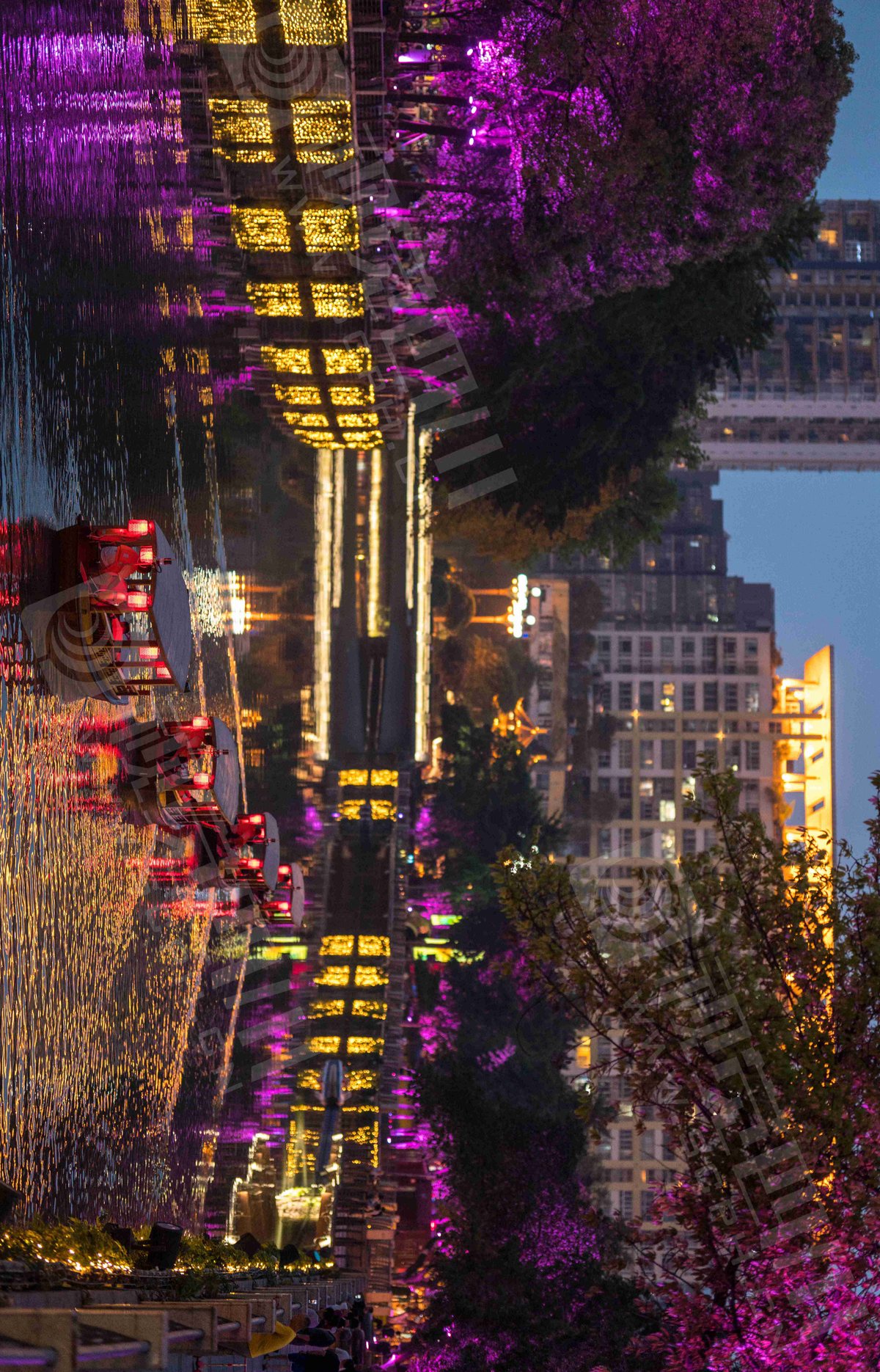 ▲4月25日,成都市民乘船夜游锦江,观赏两岸动态展示门泊东吴万里船和花重锦官城的优美画卷。川报观察记者 尹钢 摄