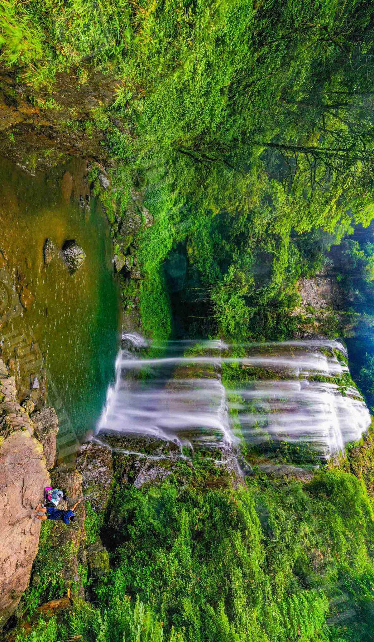 ▲7月15日,雅安雨城区天河瀑布,充沛的水流从天而降,不断在岩壁和下方的碧潭中击起雪白的浪花,芬芳的水雾更将空气充盈的格外凉爽……视觉四川 黄刚 摄