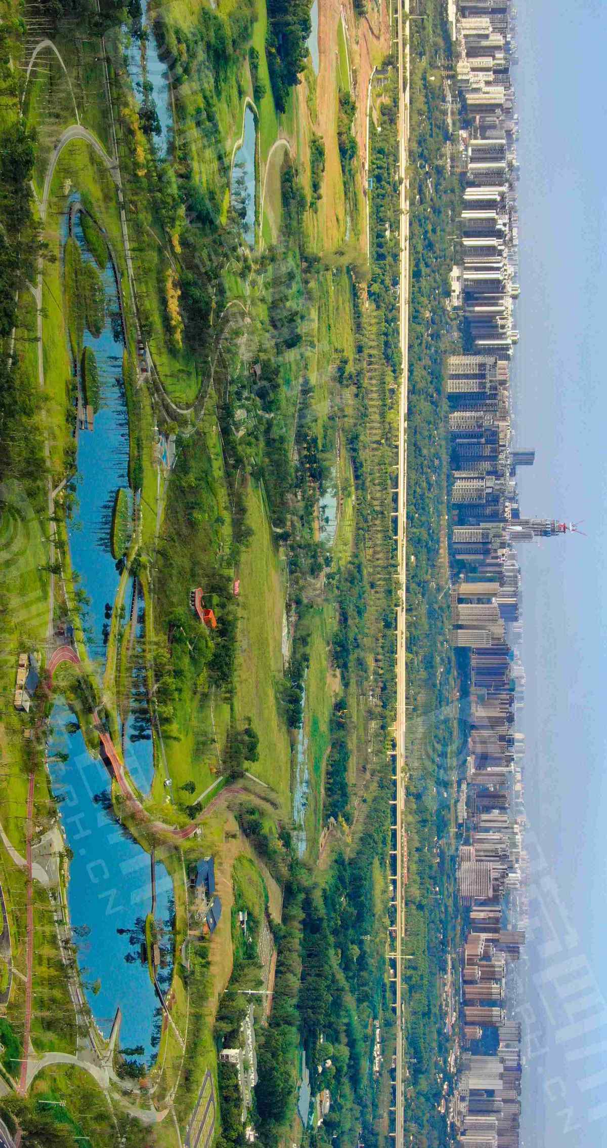 ▲6月12日,航拍遂宁市河东新区湿地公园,一片绿色呈现在眼前。视觉四川 刘昌松 摄