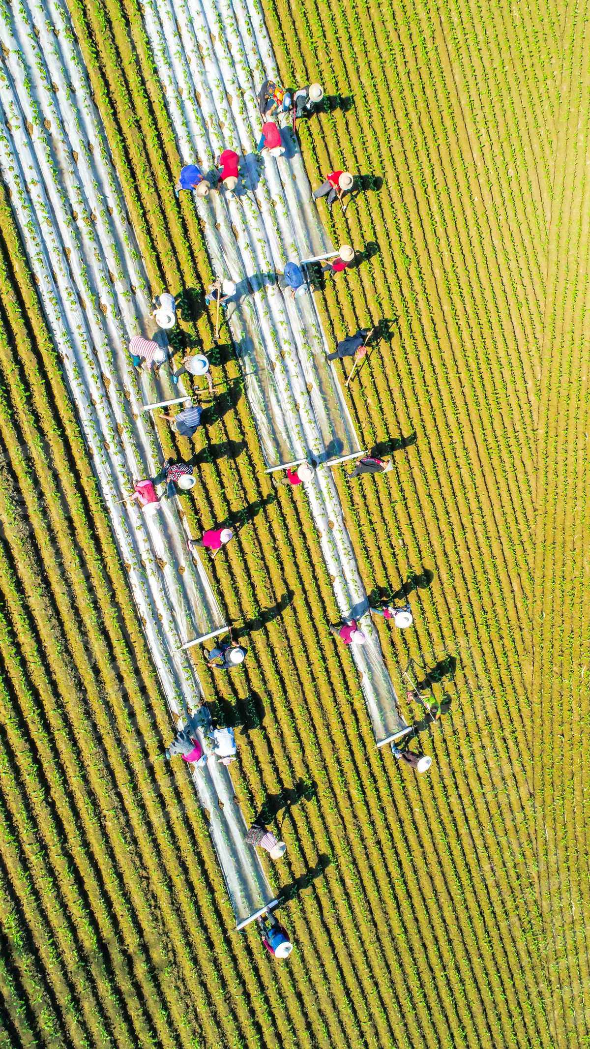 ▲10月16日,遂宁市射洪县沱牌镇桑树林村村民们正忙着给地里的萝卜青苗盖薄膜,一片繁忙的景象。视觉四川 刘昌松 摄
