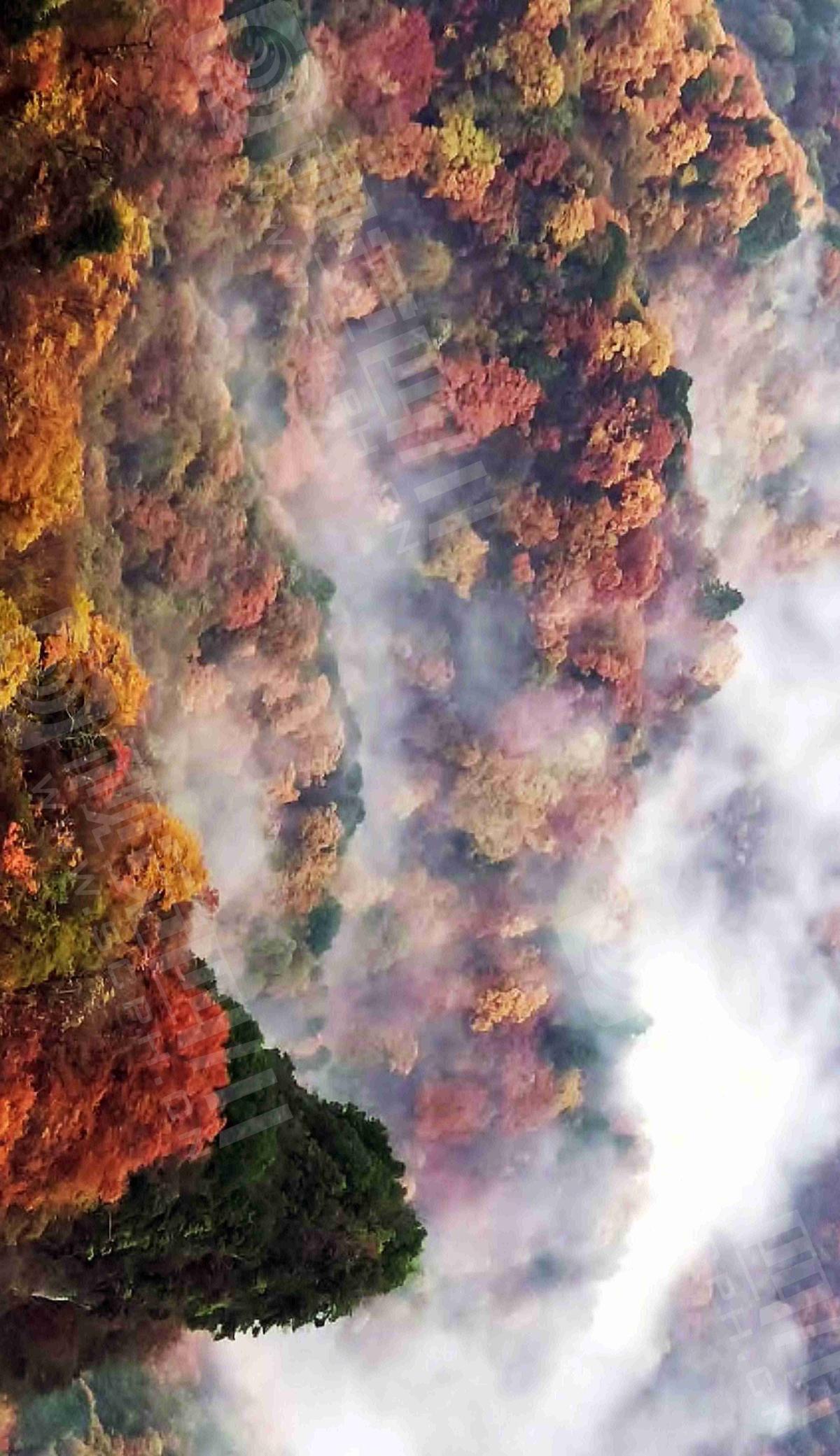 ▲10月24日,四川省巴中市南江县光雾山,雨后的山间云雾缭绕,青山与红叶彩林若隐若现,宛如一幅水墨画卷。视觉四川 肖洪波 肖定怀 摄