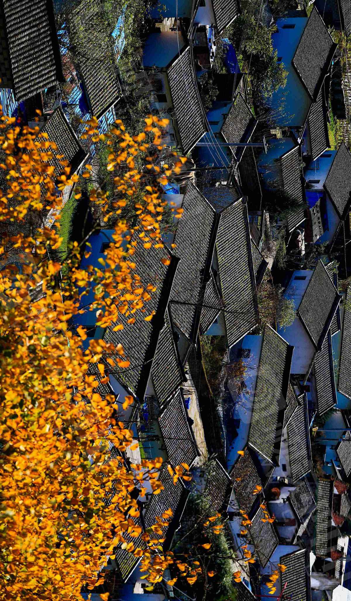 ▲10月28日,在石棉县栗子坪乡月亮湖、孟获城等地,起伏的群山层林尽染、溢彩流金,与碧水蓝天交相辉映,组成了一幅斑斓炫目的绚丽画卷。视觉四川 黄刚 摄