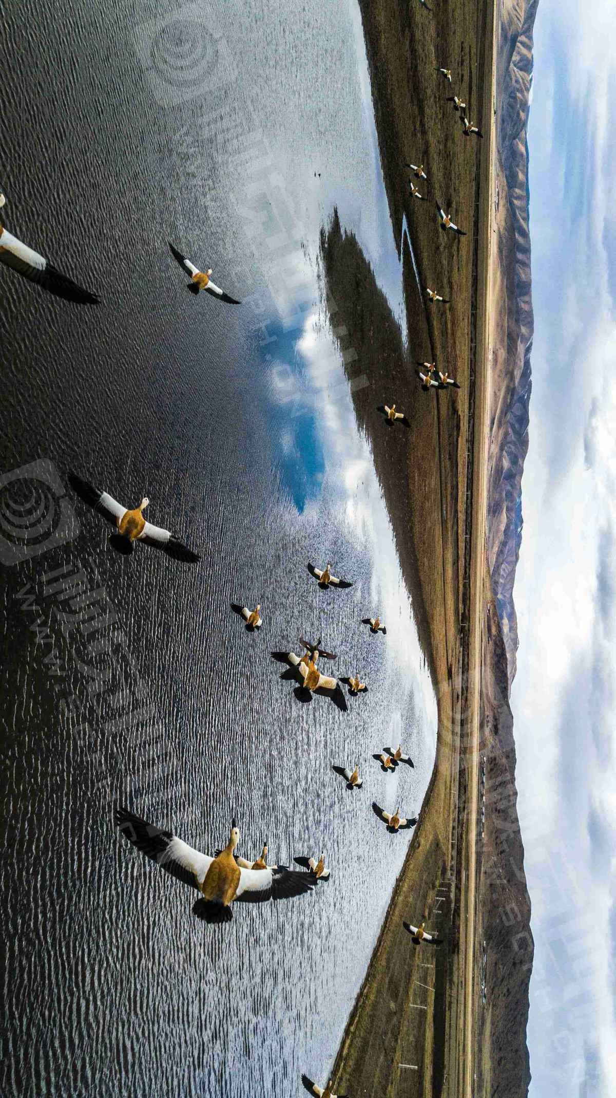 ▲11月25日,成群的赤麻鸭在红原县白河上空低飞觅食。视觉四川 银琪 摄
