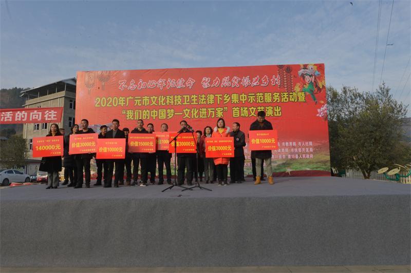 川报观察讯(苟小华)沐浴着冬日的暖阳,踏着《盛世鼓舞》的鼓点。12月27日, 2020年广元市文化科技卫生法律下乡集中示范服务活动暨“我们的中国梦-文化进万家”首场文艺演出活动在青川县木鱼镇正式启动。市县两级文化、科技、卫生、司法等单位联合组织专业技术人员、医疗工作者、文艺工作者等为农民朋友现场开展政策宣传、咨询服务、义诊义演等活动。市政协副主席赖翠兰参加活动并讲话。县委常委、县委宣传部部长陈明忠致欢迎词。