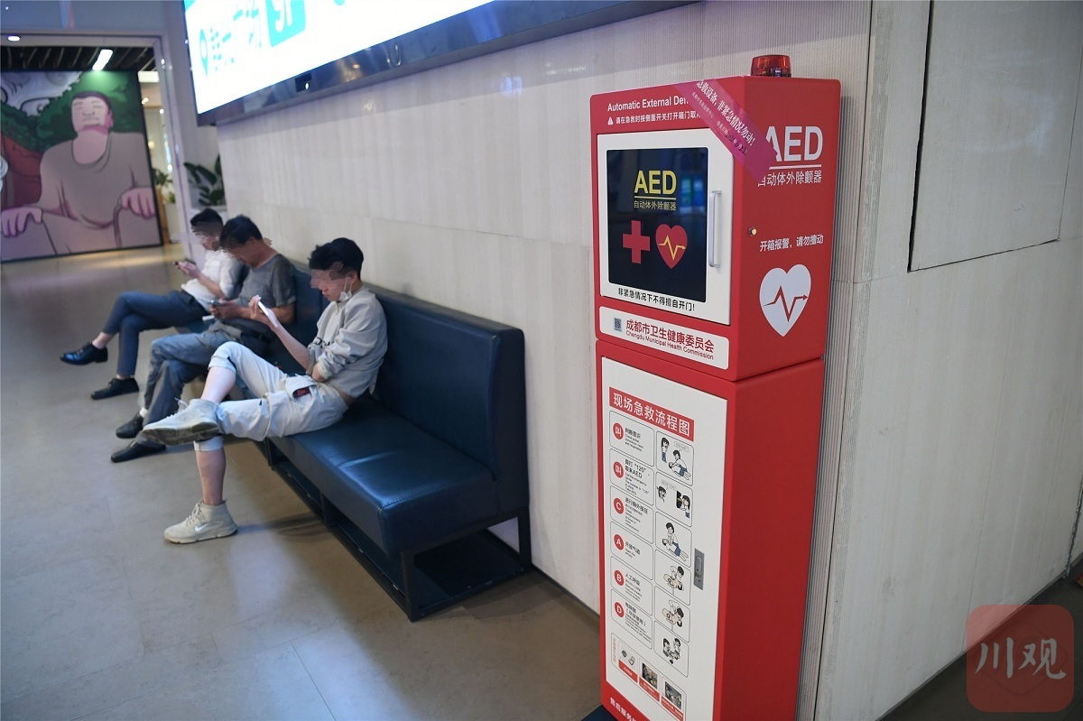 成都一商场内配备的AED(川观新闻资料图片,拍摄:李强)