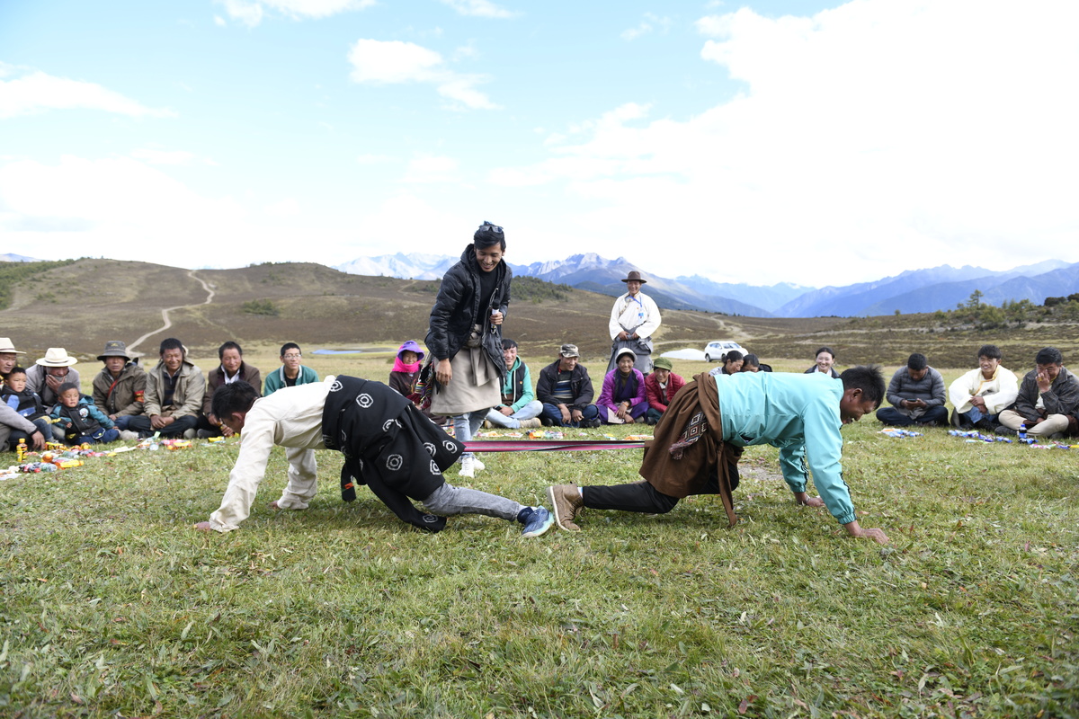 活动中,村民身着节日盛装,载歌载舞庆祝首届文化节的开幕,一首首藏歌气势磅礴,犹如天籁之音响彻草原,一曲曲藏舞节奏欢快,象征着村民即将到来的美好新生活。除了歌舞表演,活动还设置了大象拔河、换藏装等藏族特色比赛项目,村民们踊跃参加的欢声笑语不绝于耳。