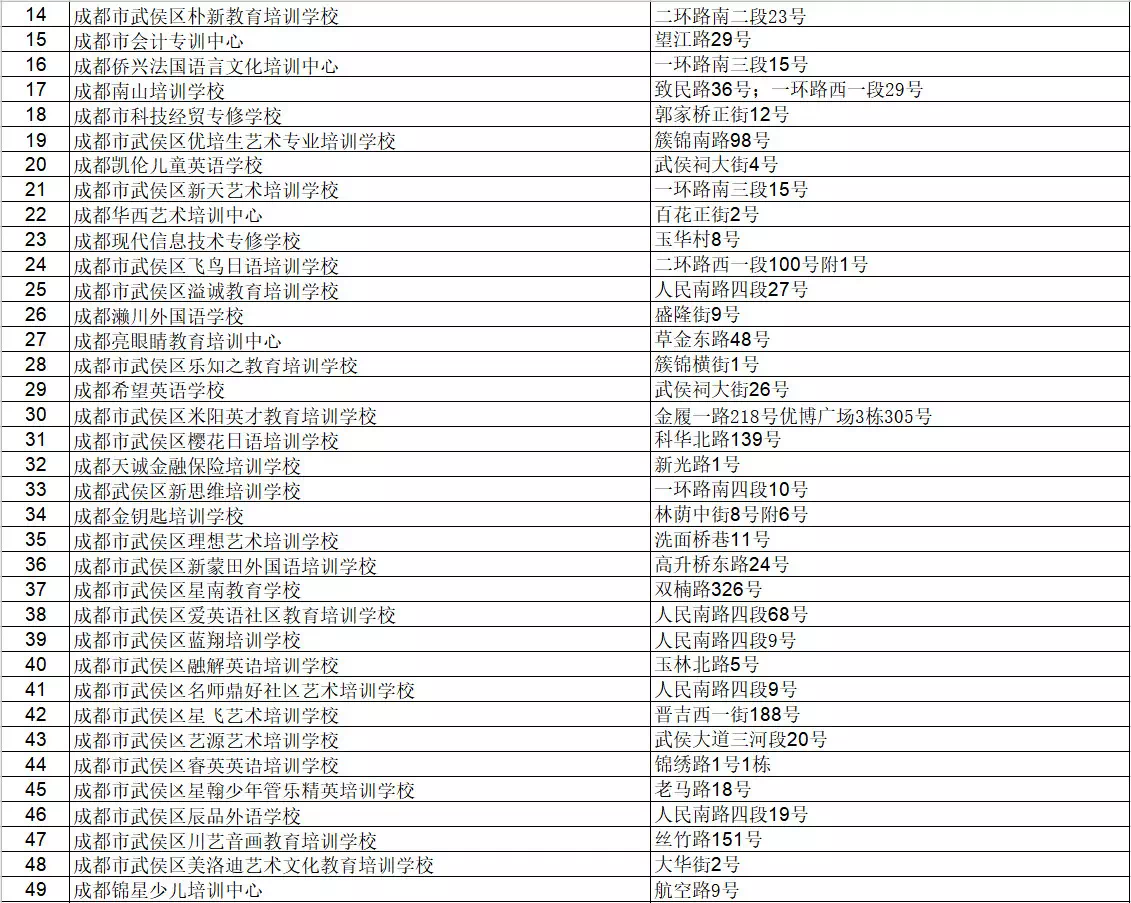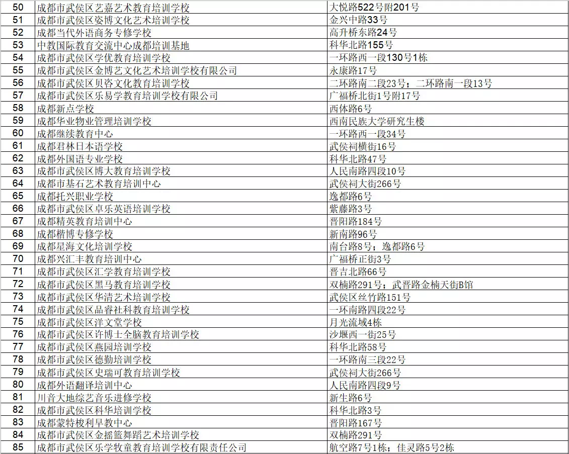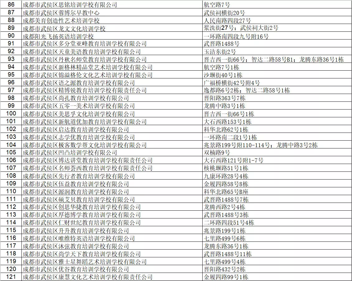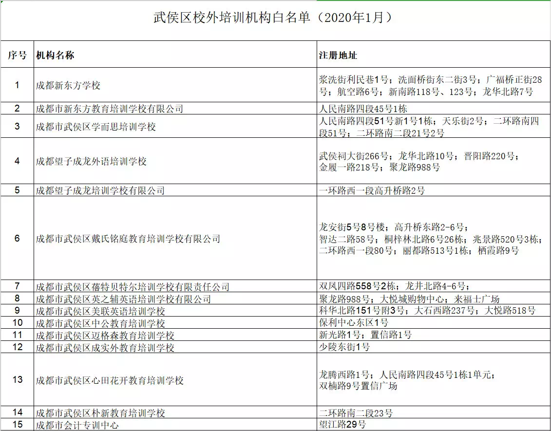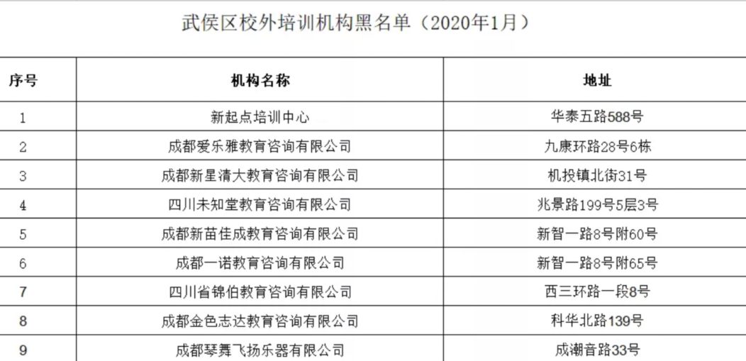 6日,成都市武侯区教育局发布一封“告家长书”,告知家长给学生选择培训学校不应跟风。同时专门提到:禁止中小学校举办或参与举办培训机构,坚决查处中小学招生与校外培训挂钩、在职中小学教师到培训机构兼职、“课上不讲课后讲”等违规行为,努力减轻中小学生课外负担。此外,教育局还公布了辖区内的培训学校黑白名单。