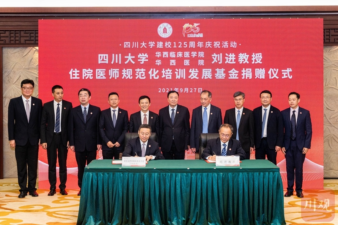 9月27日下午,四川大学举行“刘进教授规范化培训发展基金捐赠仪式”。四川大学华西医院麻醉手术中心主任刘进教授向医院捐赠1亿元,设立规培专项基金,用于激励住院医师、带教师资,提高住院医师临床能力,这也是我国首个由个人捐赠设立的专项规培发展基金。