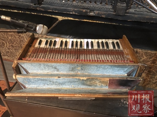 这几段舞蹈表演的背景音乐均由当地表演者现场演奏。一支笛、一张鼓、一架风琴、一副铃鼓,几人合唱,就能演绎出不同风格的音乐。其中,表演者用到的风琴为尼泊尔特有的簧风琴(harmouniu),右手弹奏、左手前后拉动风箱,就能奏出美妙的音乐。