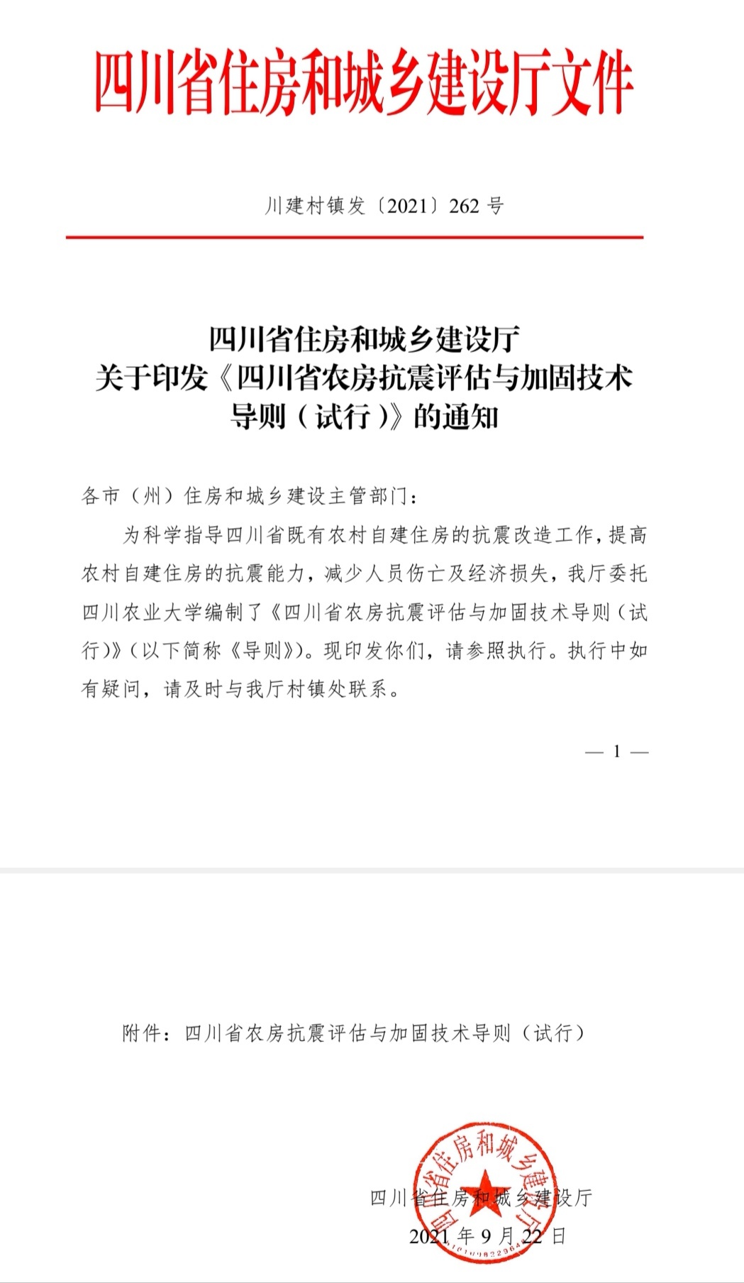 9月28日,记者从省住建厅获悉,近日,在该厅指导下,由四川农业大学组织该校土木工程学院专家团队编制的《四川省农房抗震评估与加固技术导则》(以下简称《导则》)已加紧完成并正式印发。