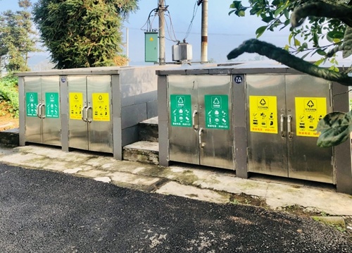 泸州市江阳区分水岭镇董允坝村晏石坝聚居点设置的垃圾集中收集点。