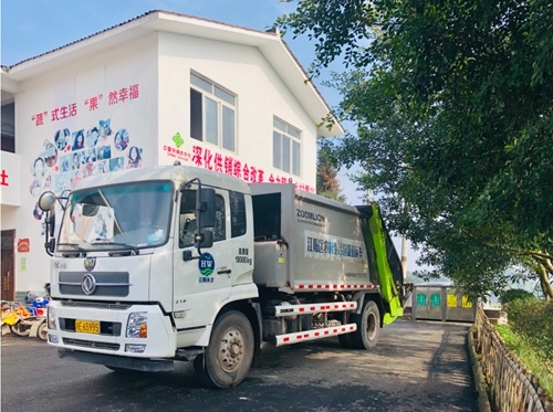 农村生活垃圾处理,一直是农村人居环境治理的难点。在董允坝村晏石坝聚居点的垃圾集中收集点,常常能看到一辆绿白相间的压缩式垃圾清运车停在路边,两名身着橘色环卫服的工作人员,正在将从收集点拖出来垃圾桶中的垃圾,倒入清运车中,整个清运过程快捷、干净。