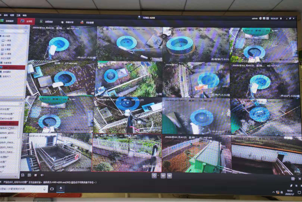 在通滩污水处理厂办公室的显示屏上,显示着通滩污水处理厂多角度实时影像。不仅如此,江阳区所有厂站的影像都可以显示、监控各厂站的运行情况,能在第一时间发现厂区存在问题,并通知巡检人员去现场进行处理。巡检人员除了处理巡检中发现问题外,还要进行进出水取样送检及快速分析,调整设备运行工况,及时公布水质监测数据,确保出水稳定达标。