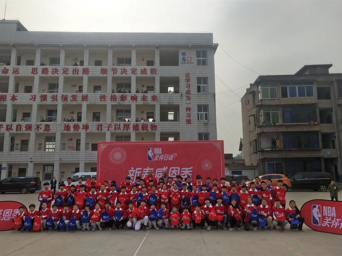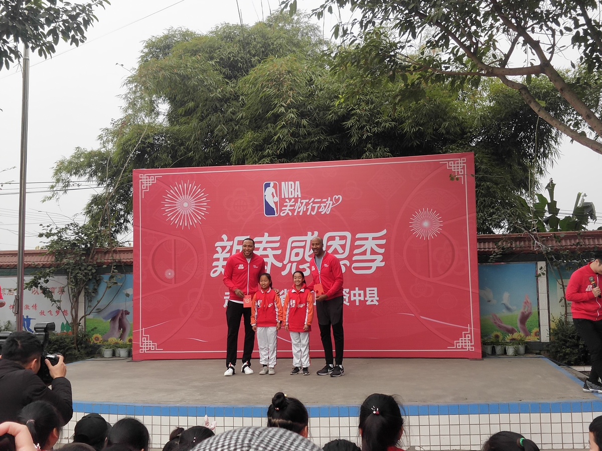 1 月9日,NBA关怀行动新春感恩季活动正式走进内江市资中县,当天上午,资中县明心寺镇莲池铺村小学迎来了两位特殊的客人—NBA退役球员布鲁斯-鲍文和肖恩-马里昂。