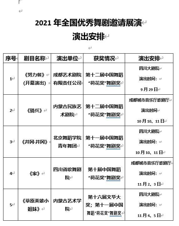 9月29日晚,2021年全国优秀舞剧邀请展演将在四川开幕。与此同时,代表四川夺得舞蹈界专业最高奖“荷花奖”的舞剧《努力餐》打头阵,作为大幕大戏在四川大剧院上演。未来两个月,来自全国10个省、市、自治区近十年来获得全国“五个一工程”奖、文华大奖及中国舞蹈“荷花奖”舞剧奖的12部优秀舞剧作品,将在接下来的2个多月时间里,为四川观众们接连奉上24场风格多元的高水准演出和业内配套交流、采风、技能比武活动。