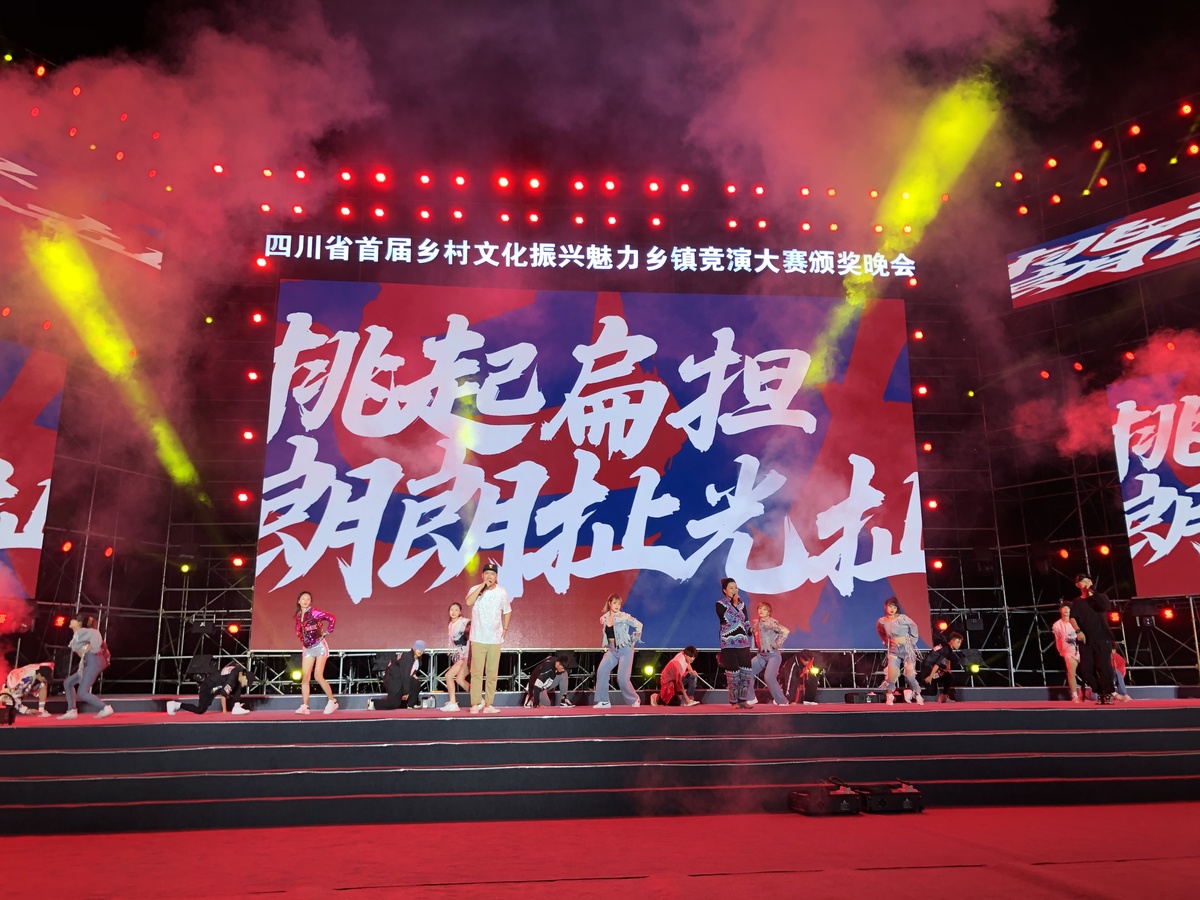 9月29日晚,四川省首届乡村文化振兴魅力乡镇竞演大赛颁奖晚会在德阳金锣湾生态公园隆重举行,晚会主题歌舞表演《四川乡当潮》成为整场晚会一个“燃”点。
