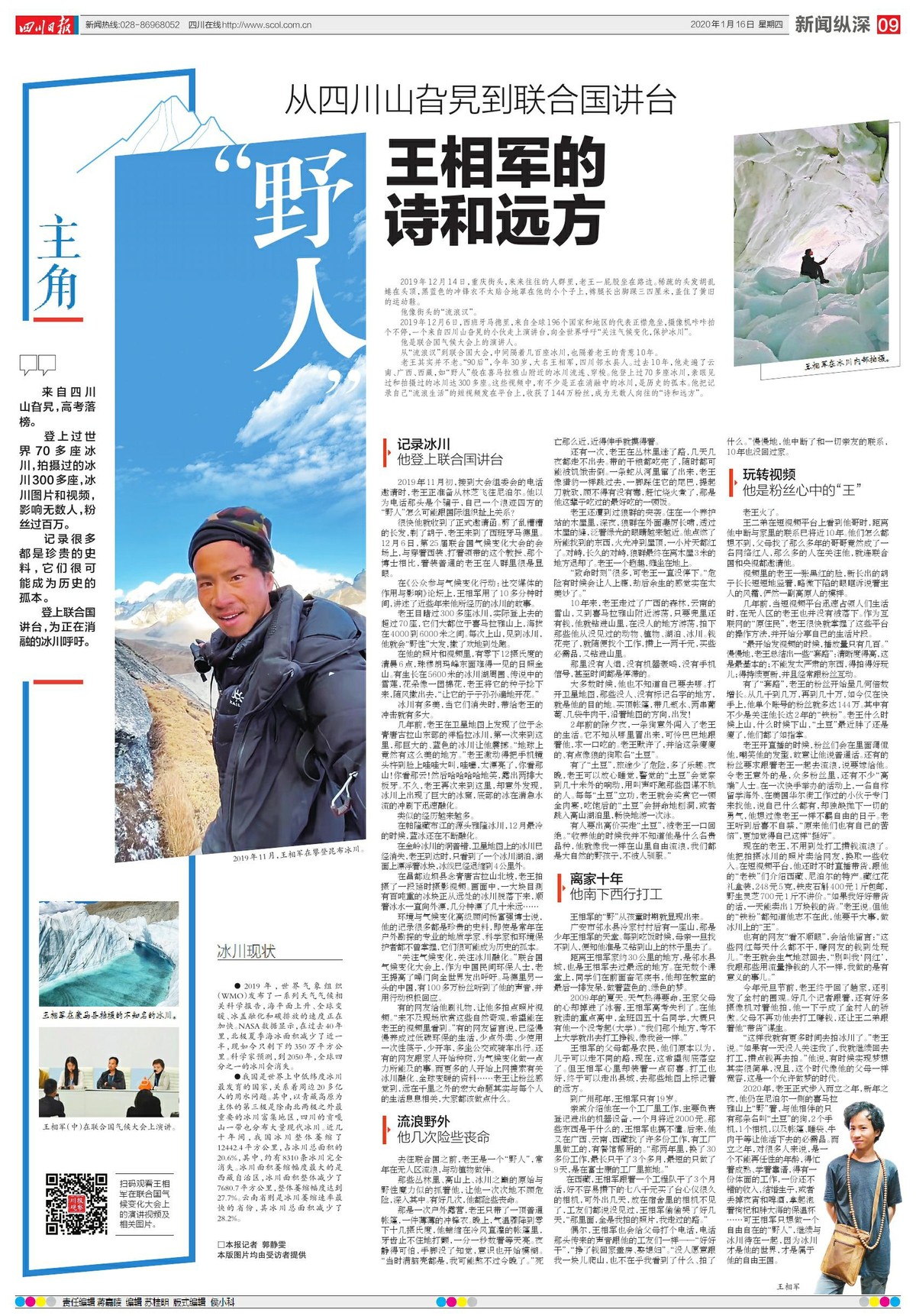 编者的话:1月16日,四川日报第9版推出整版人物报道《主角》专栏。聚焦于我们身边普通人的不凡事,谁都有可能成为报道的主角。这一篇开栏的报道,写了一位专注于记录冰川变化的邻水县“90后”。