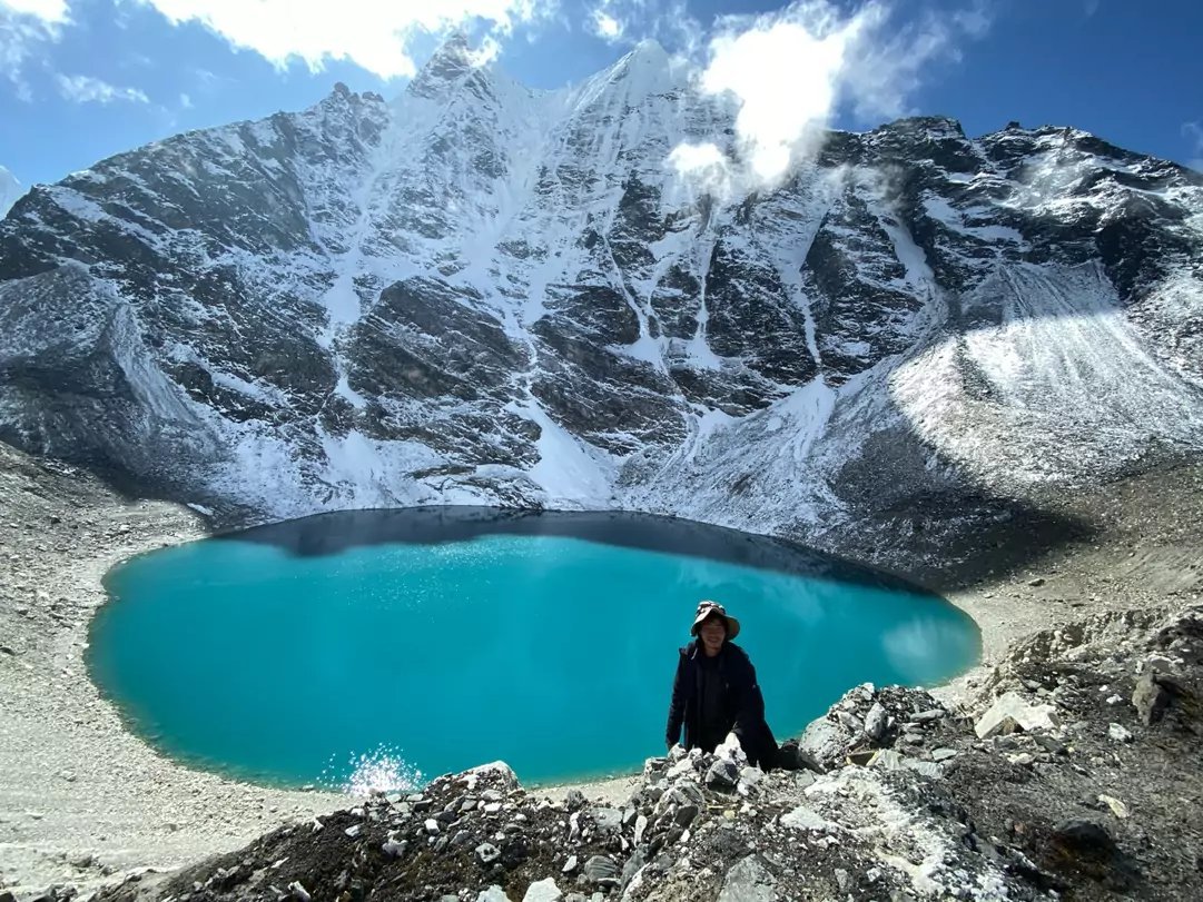 在金岭冰川的炯普错,卫星地图上的冰川已经消失,老王到达时,只看到了一个冰川湖泊,湖面上漂浮着冰块,冰线已经退缩到4公里外。