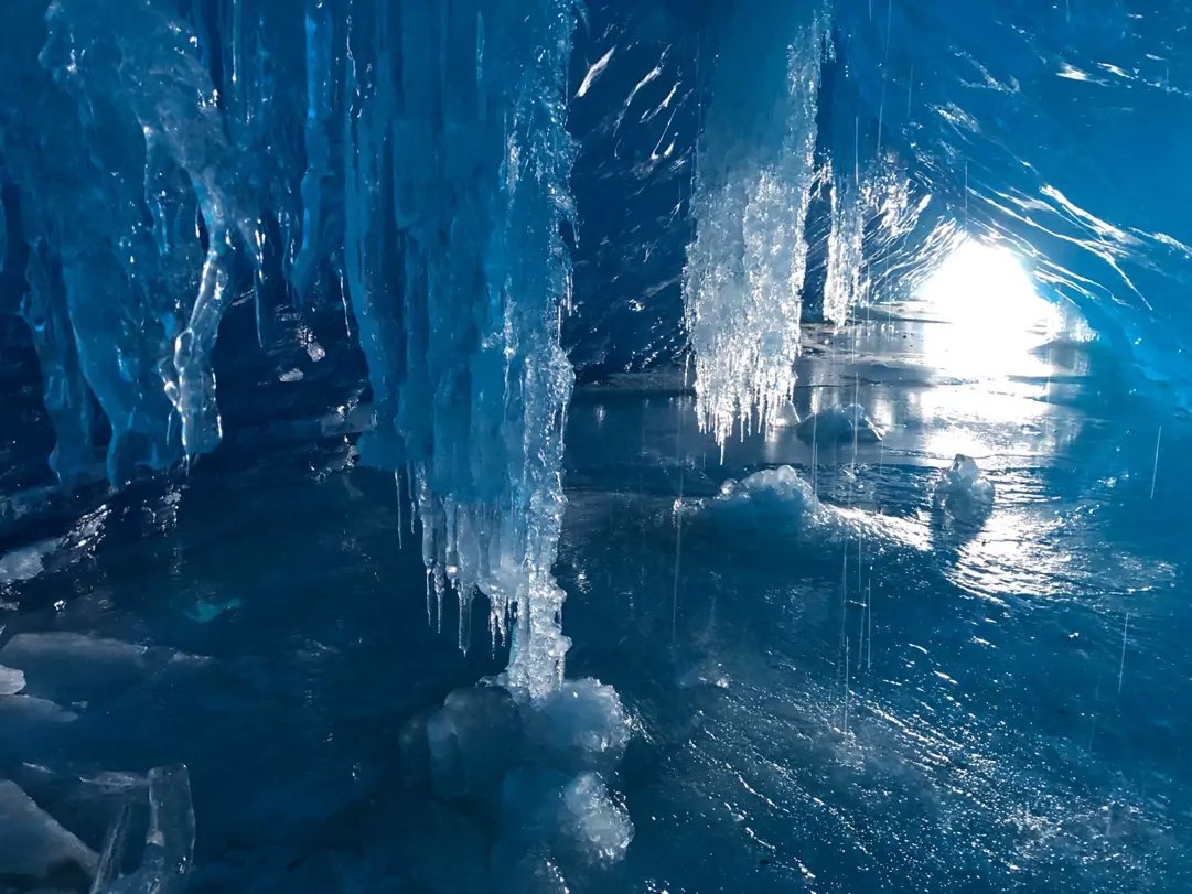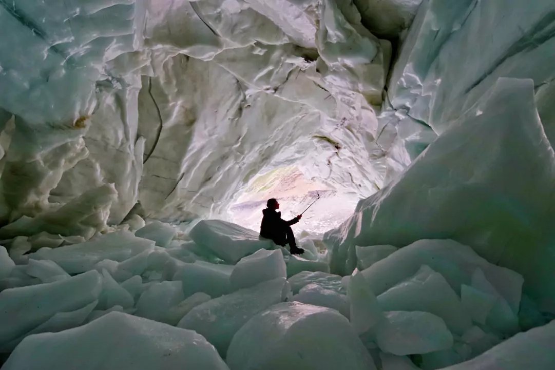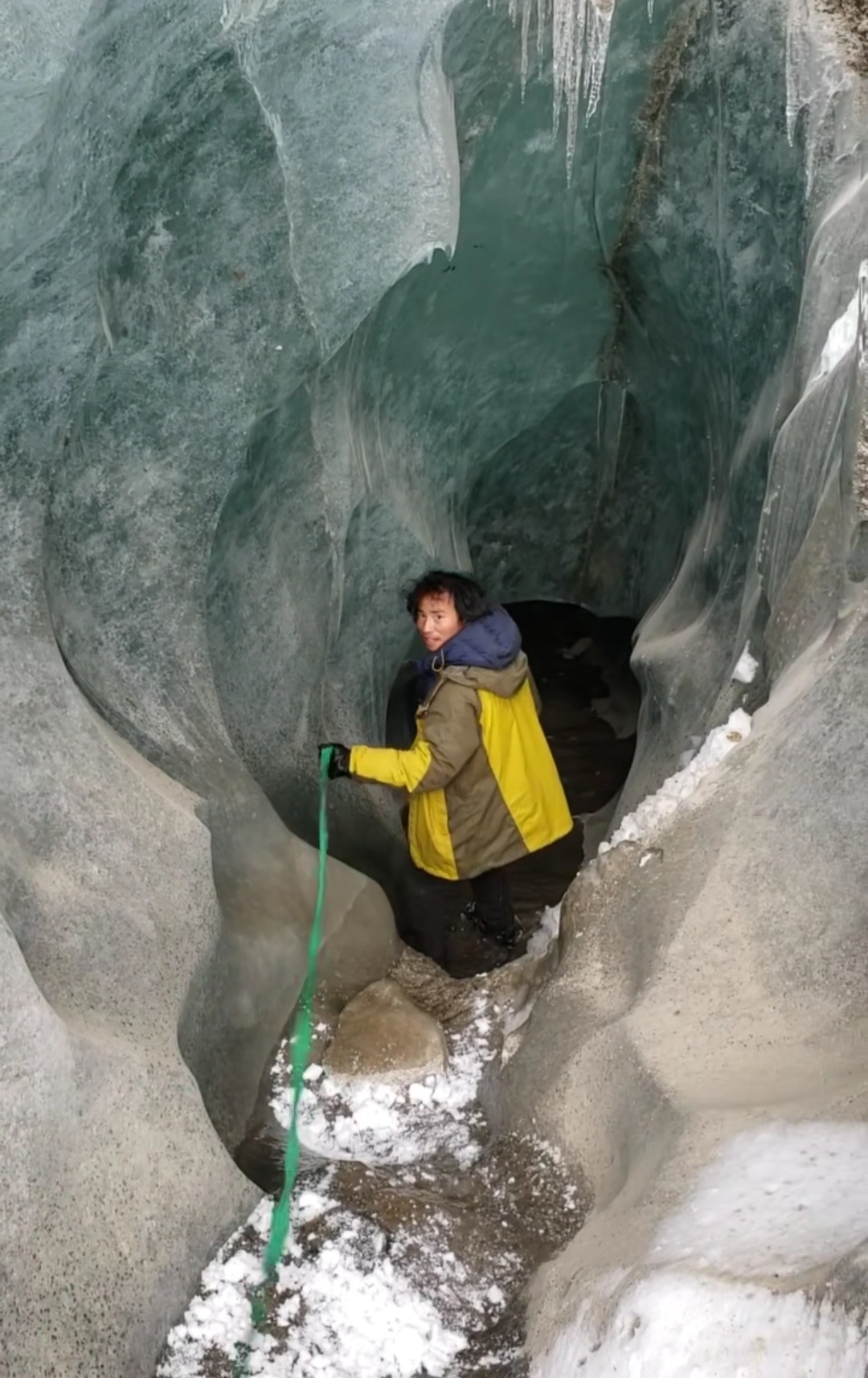 不久,老王再次来到这里,却意外发现,冰川上出现了巨大的冰窟,底部的冰在湍急水流的冲刷下迅速融化。