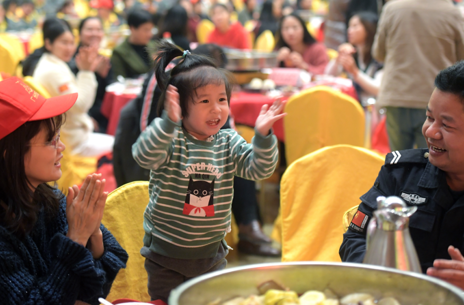 “太幸福了!” “新年快乐!”……1月13日晚,广东省广州市白云区黄边文体康乐馆欢声笑语,喜气洋洋。舞台上,熟悉亲切的四川乡音暖透了现场每一位农民工的心;舞台下,广东的“大盆菜”、四川的回锅肉,带来欢乐祥和过年气氛……