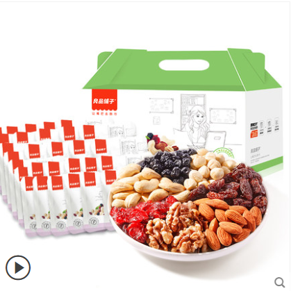 吃货必备,新鲜,营养,健康!坚果大礼包活力白领版,富含高蛋白,更适合白领及健身人群。原料精选5国原料,包括巴旦木,腰果果仁,核桃仁,榛子仁,蔓越莓果干,红提干,蓝莓果干。采用干湿分离包装,分区锁鲜,果仁干脆,果脯新鲜。