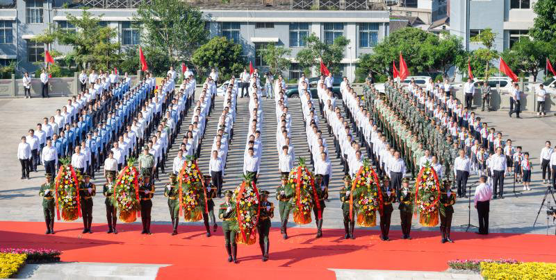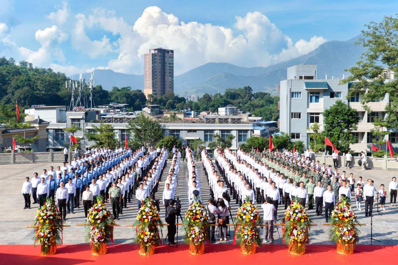 天地英雄气,千秋尚凛然。米易县烈士陵园内庄严肃穆,绿树环绕。烈士纪念碑矗立于陵园中心。碑身正面,“人民英雄永垂不朽”八个大字苍劲有力,在阳光下熠熠生辉。近300名驻攀部队官兵、烈士遗属、战斗英雄、老战士、劳动模范、机关干部、学校师生以及社会各界代表一起,神情庄重,排着整齐的队列面向纪念碑整齐列队。纪念碑后的墓园内幽静、肃穆,青松翠柏,绿草如茵。这里长眠着253名在剿匪战役、修建成昆铁路、社会主义建设事业中英勇献身的烈士。其中,年龄最大的烈士为52岁,最小仅16岁。