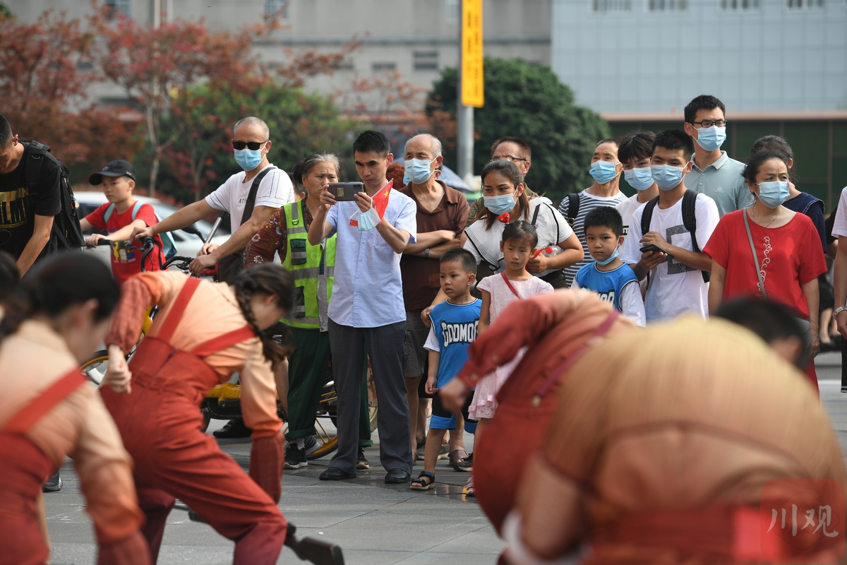 “很有才华!这个片段放在街头好接地气,又体现了革命者的情怀!”成都市民夏光宣边看快闪边说道。另一位现场观众夏光宣,帮女儿带着“二胎”,抱着孙子孙女也前来观看:“恰巧我本身就在剧场里看过这部剧的,今天演员们又来到街头,还跳得这么好,国庆节还在为我们坚持工作,敬业又辛苦!为他们点赞。”